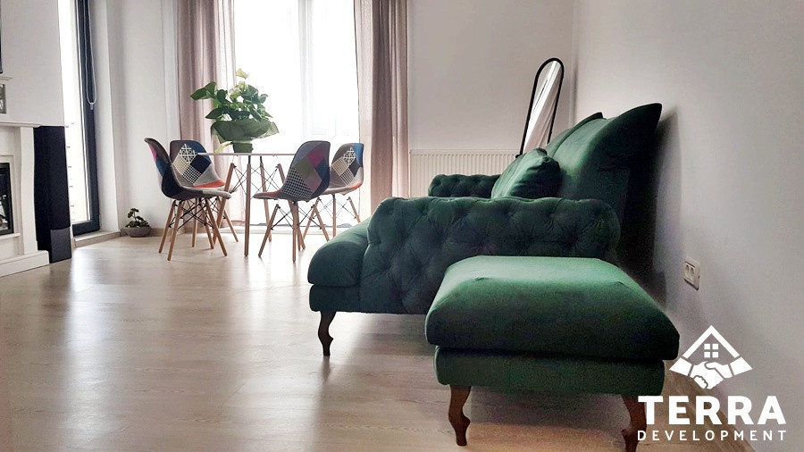 Apartamentul beneficiază de finisaje premium, mobilier atent ales și o compartimentare practică, care oferă lumină naturală și spații bine definite. Bucătăria este complet echipată, iar zona de living creează un ambient primitor, ideal pentru relaxare. Dormitorul este spațios și amenajat pentru odihnă, iar baia este modernă, cu obiecte sanitare de calitate.