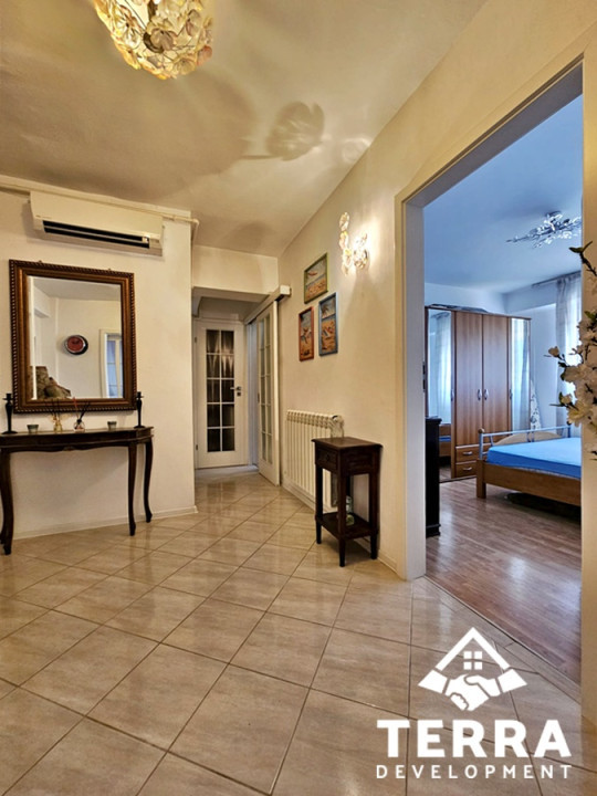 Locuința este dotată cu centrală proprie pe gaz, aer condiționat, oferind control total asupra temperaturii și costurilor de întreținere, iar baia dispune de geam pentru aerisire naturală – un avantaj important din punct de vedere al confortului și funcționalității. Compartimentarea decomandată permite o organizare practică a spațiului interior, fiecare cameră fiind bine delimitată și luminoasă.