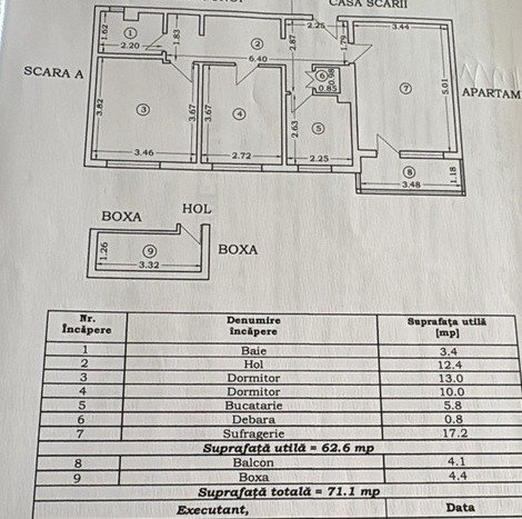 Locuința are o suprafață utilă de 62,6 mp, la care se adaugă un balcon de 4,1 mp și o boxă de 4,4 mp – un spațiu foarte util pentru depozitare. Compartimentarea decomandată oferă confort și intimitate, iar camerele sunt luminoase și bine proporționate.