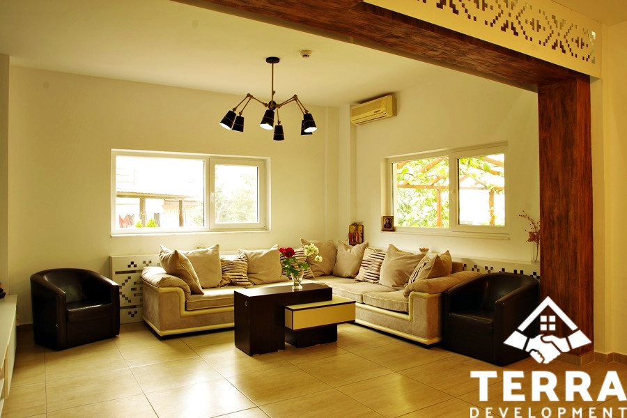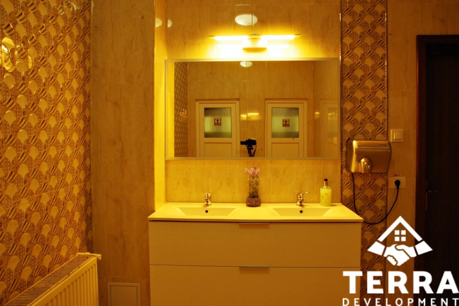 La parter te întâmpină o recepție elegantă, lounge spațios, zonă de dining și bucătărie complet utilată. În exterior, o curte primitoare cu foișor, grătar și zone de relaxare, plus parcare pentru 4-5 mașini.