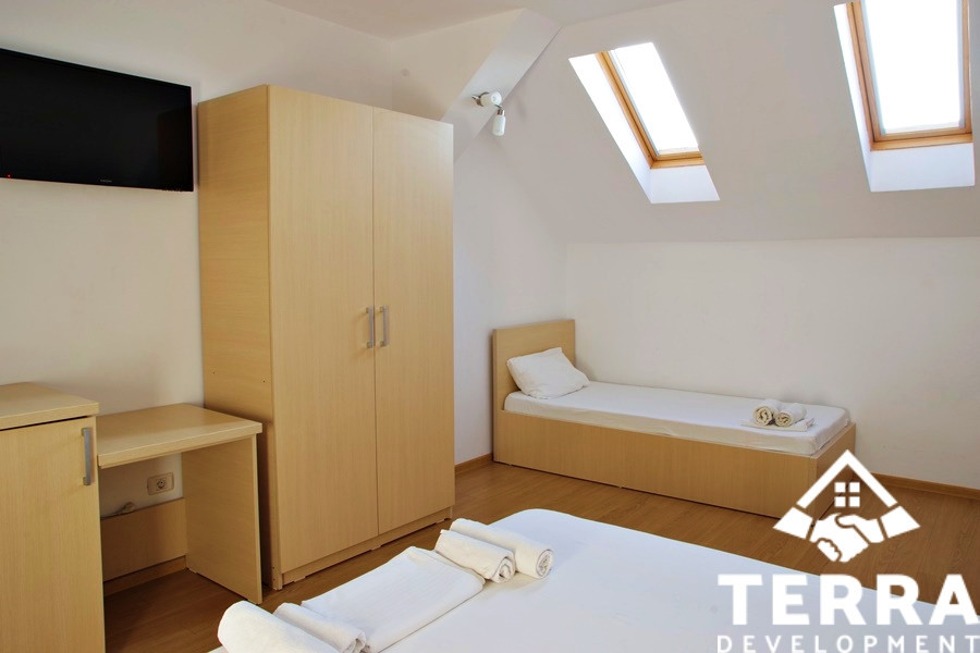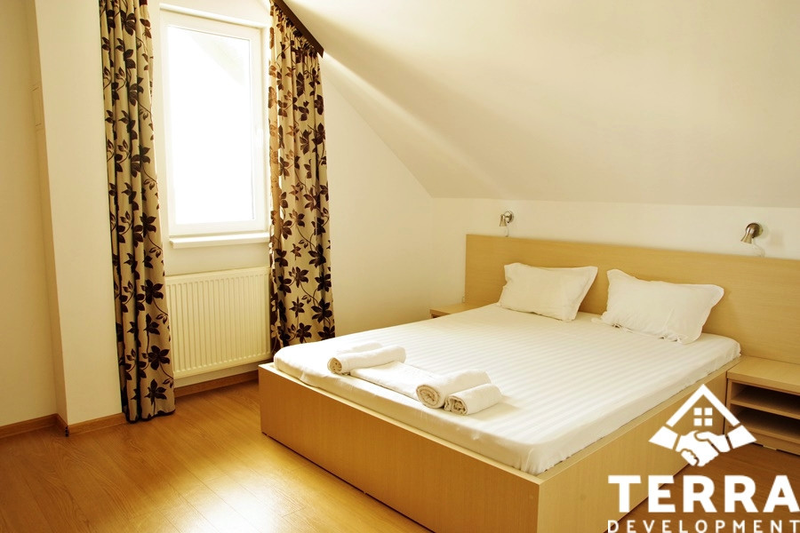 Pensiunea pe care o prezint te va cuceri din prima clipă prin eleganta, spațiu și funcționalitate. Cu o suprafață desfășurată de 967 mp + 137 mp terase și balcoane, pe un teren de 430 mp, această proprietate se întinde pe 6 niveluri și oferă 23 de unități de cazare complet echipate – fiecare cu baie proprie, balcon și aer condiționat.