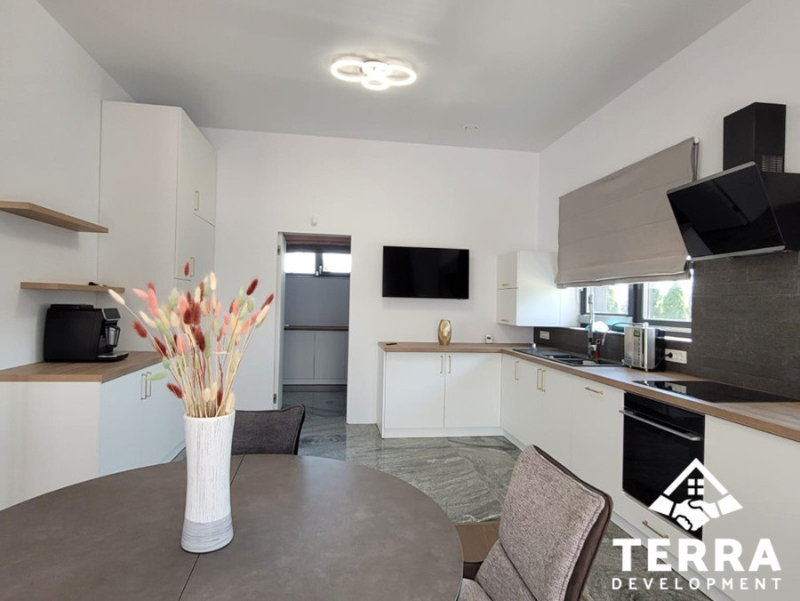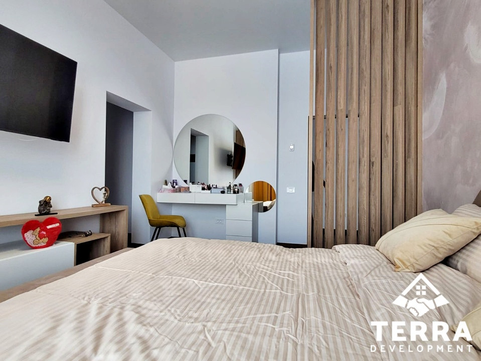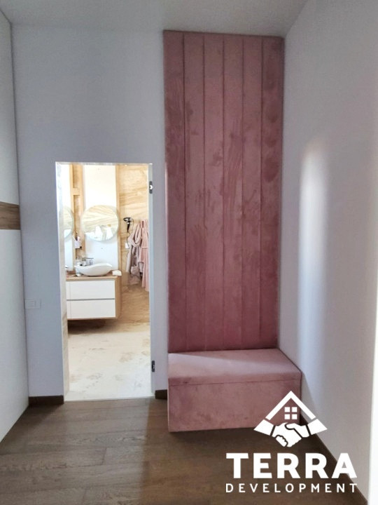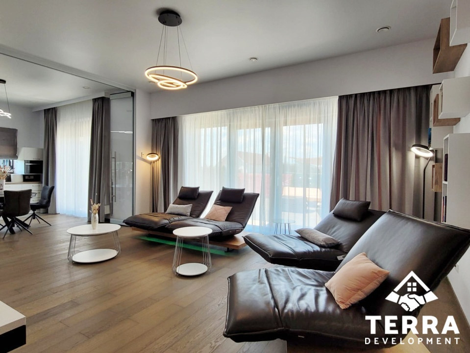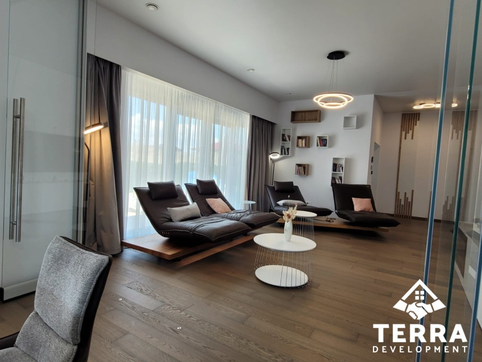 Interiorul este definit de spații ample, luminoase, cu 4 camere, dintre care 3 dormitoare, un living generos, 2 băi, terasa spatioasa, zone tehnice , garaj și multiple spații de depozitare. Fiecare detaliu reflectă un standard ridicat de calitate și durabilitate.