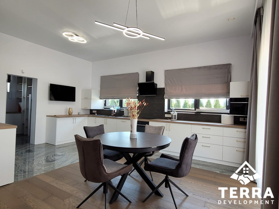Amplasată pe un teren de 1.020 mp, cu o suprafață de 300 mp, proprietatea impresionează prin calitatea construcției, finisaje superioare și eficiență energetică remarcabilă.