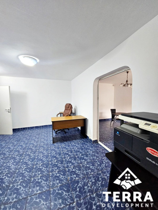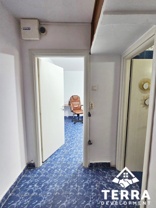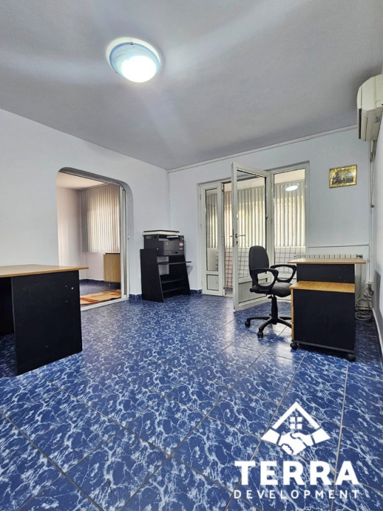 Va propunem spre închiriere un apartament de 2 camere, ideal pentru diverse activități de birou cu trafic redus, precum: cabinet psihologic, coaching, contabilitate, consultanță, IT, activități juridice, traduceri, resurse umane etc. Situat în zona Casa de Cultură, foarte ușor accesibil, aproape de mijloace de transport, instituții și zone comerciale. Spațiul se închiriază mobilat pentru birou, dispune de baie, bucatarie, balcon si este dotat cu geamuri tamplarie PVC, centrala pe gaz, gresie pe toata suprafata podelei. Pentru acces facil si discret dispune de intrare separata prin spate, cu acces din balcon. Proprietatea este disponibilă imediat. Pentru detalii suplimentare și programarea unei vizionări nu ezitati sa ne contactati.