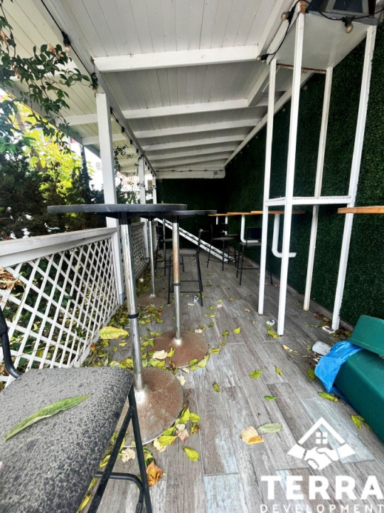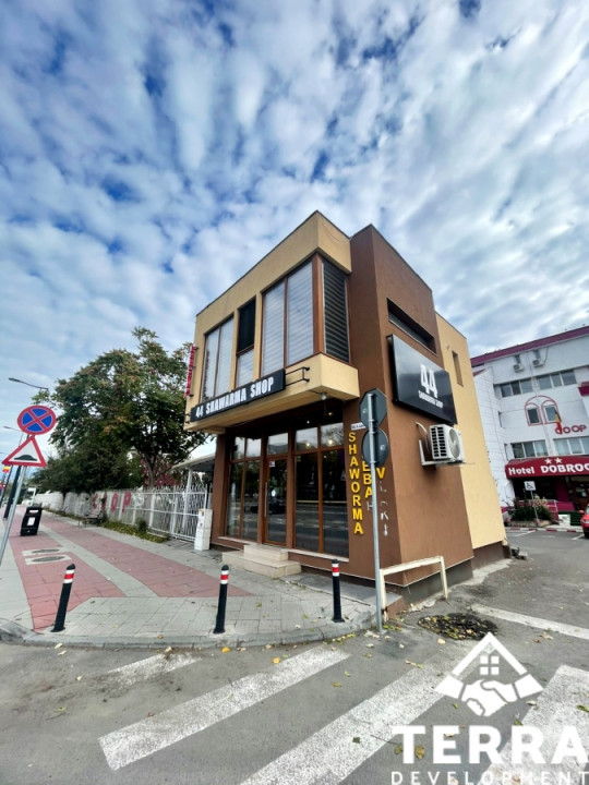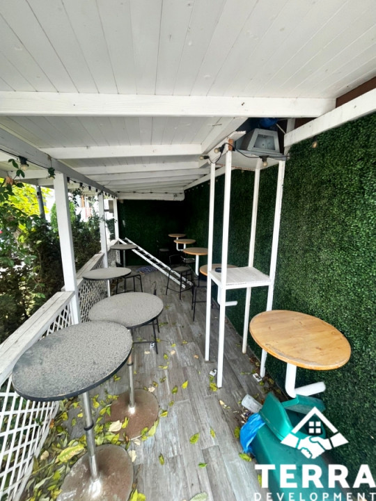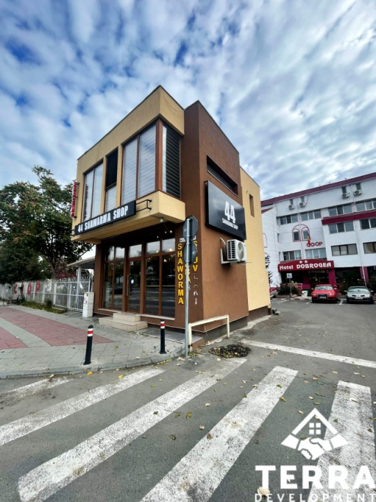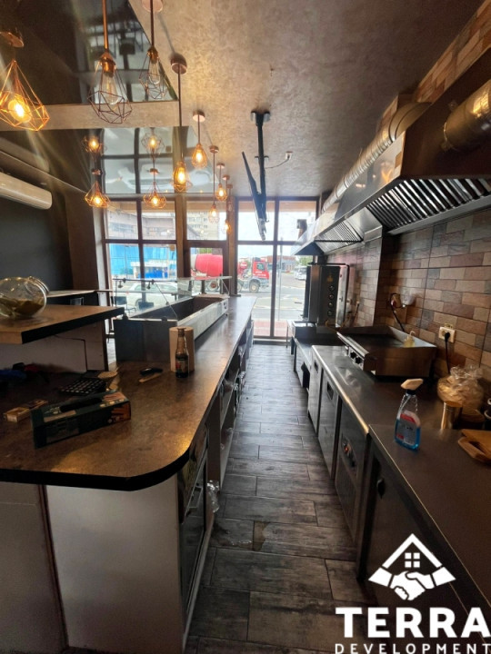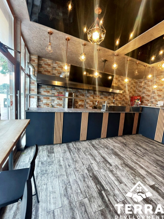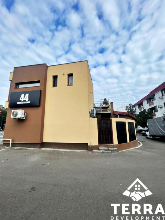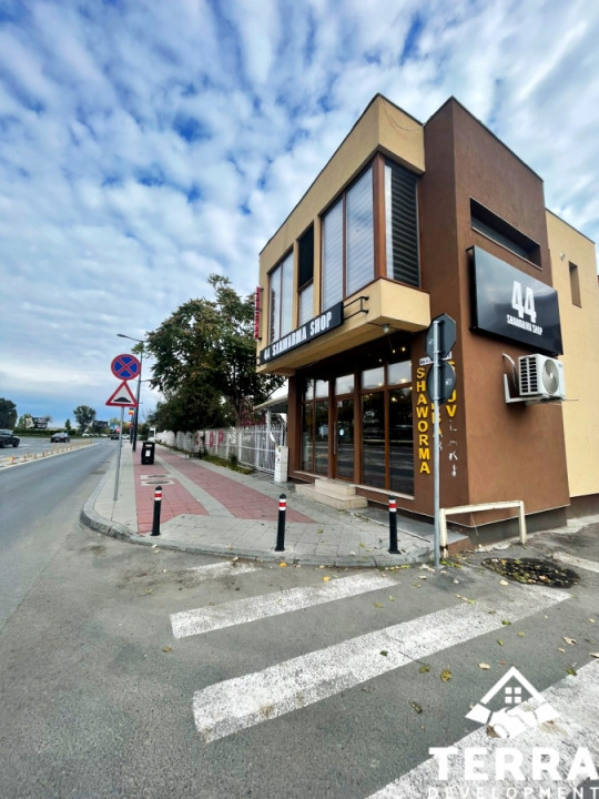 Are o suprafata de 90 mp, vizibilitate excelenta , terasa laterala , spatiu de depozitare si mobilier modern.
