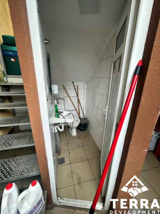 *Deasupra spatiului , la etaj, se afla o garsoniera moderna complet mobilata cu bucatarie open-space si baie proprie perfecta pentru locuit sau birou.
